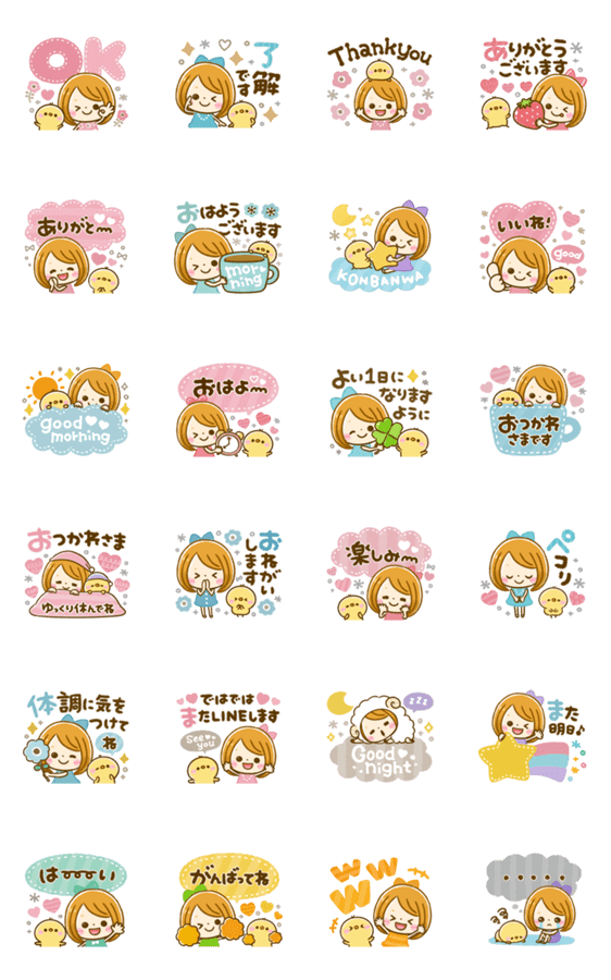 女の子が可愛く動く♡毎日使えるスタンプです♪