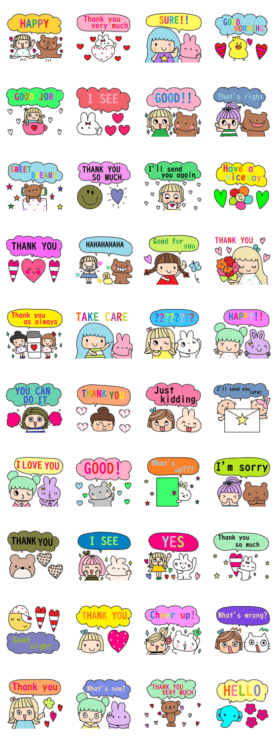 日本語英語韓国語タイ語中国語ございます。絵文字や着せ替えもございます。