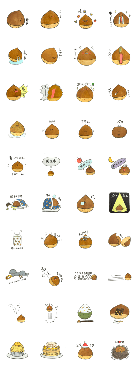 喜怒哀楽する栗のラインスタンプです。