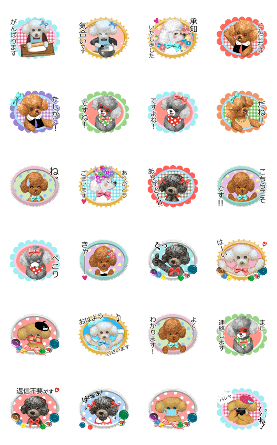敬語のプードル、おじぎのプードル、あいさつするプードル、気遣うプードル、かわいいプードルたちを集めました。わんちゃん好きな方へのプレゼントにもおすすめです。