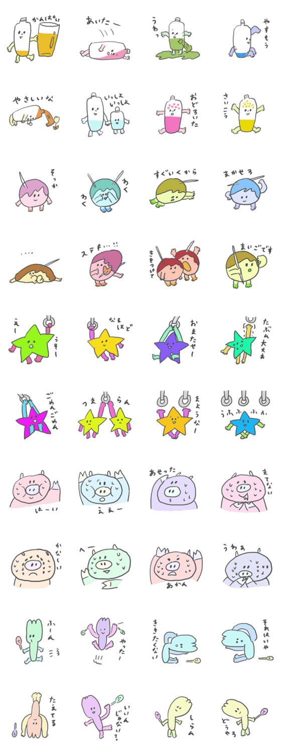 ボトル、たこやき、ぶた、ほし、フォーク W -LINEスタンプマニア