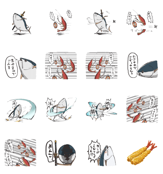 これはマグロのスタンプです。また、一部に海老を含みます。