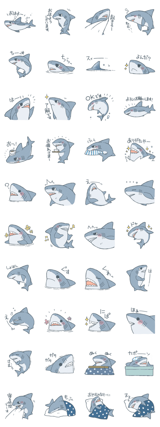 ふんわりとしたサメさんのスタンプ。日常使いにおすすめです!