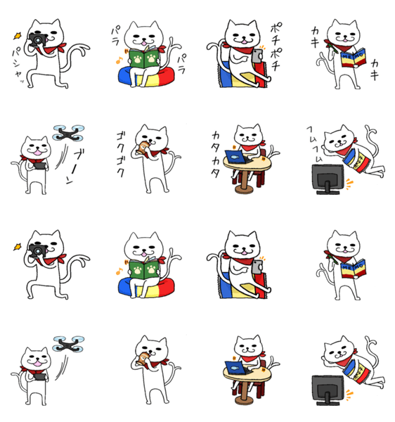 白ネコのあいうえお・・・ってるスタンプ
