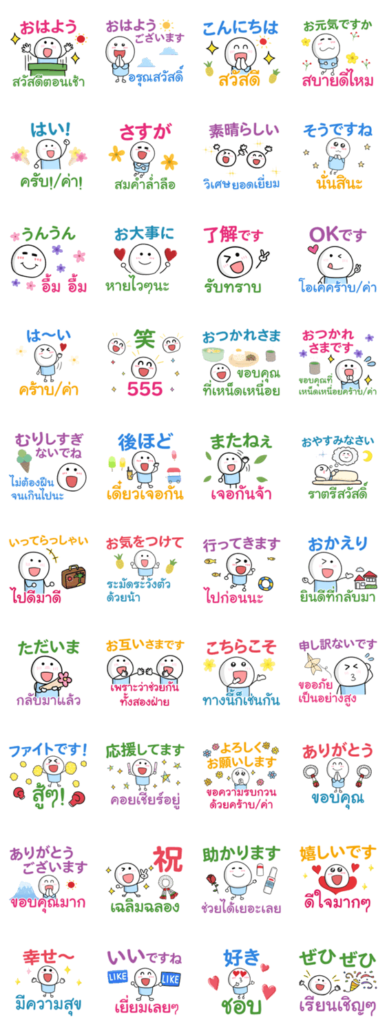 | スタンプ説明 | 丁寧な毎日の言葉。タイ語と日本語でお使いください |