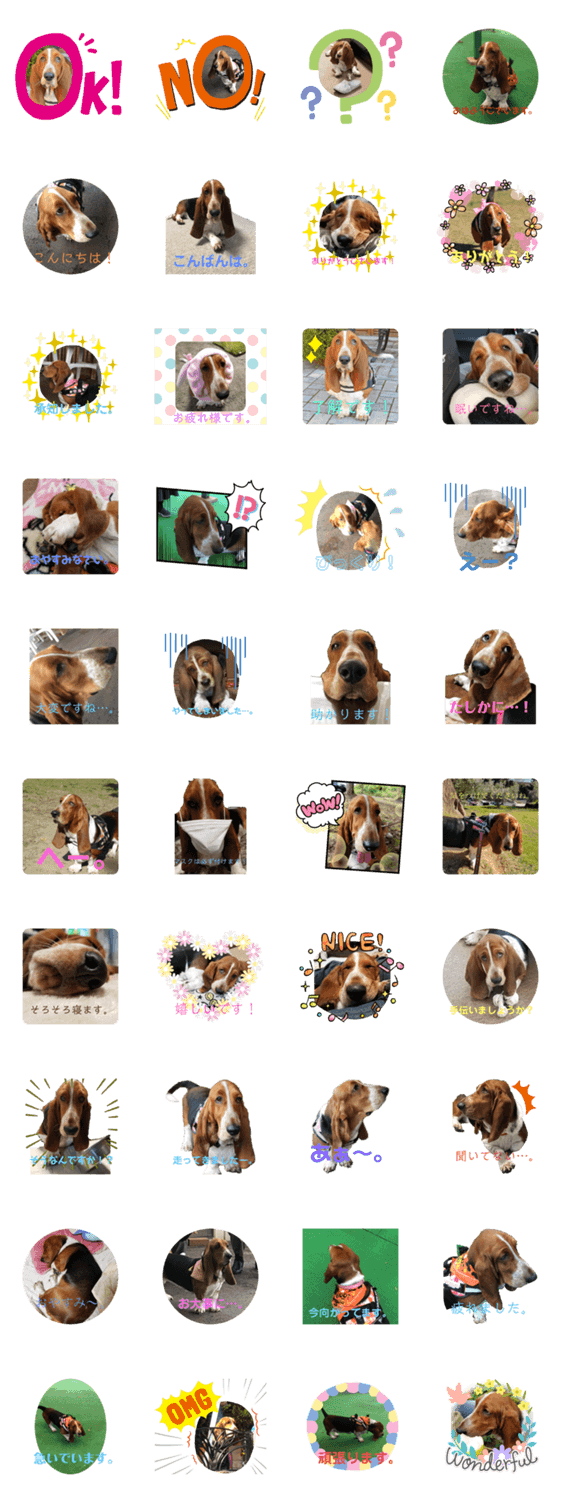 可愛い犬のひめちゃんスタンプです。敬語(だいたい)のスタンプなので、家族以外にも使えます。