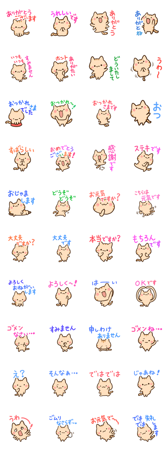 ゆるく、かわいいトラ猫のスタンプです。丁寧な言葉や敬語でやさしく応援します。ネコ好きな方にぜひ。【かたこ】