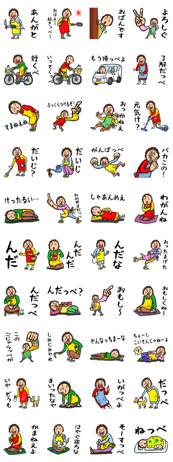 | スタンプ説明 | 茨城県に住んでいる元気で優しいお母さんが、茨城県の方言、茨城弁を喋ります。 |