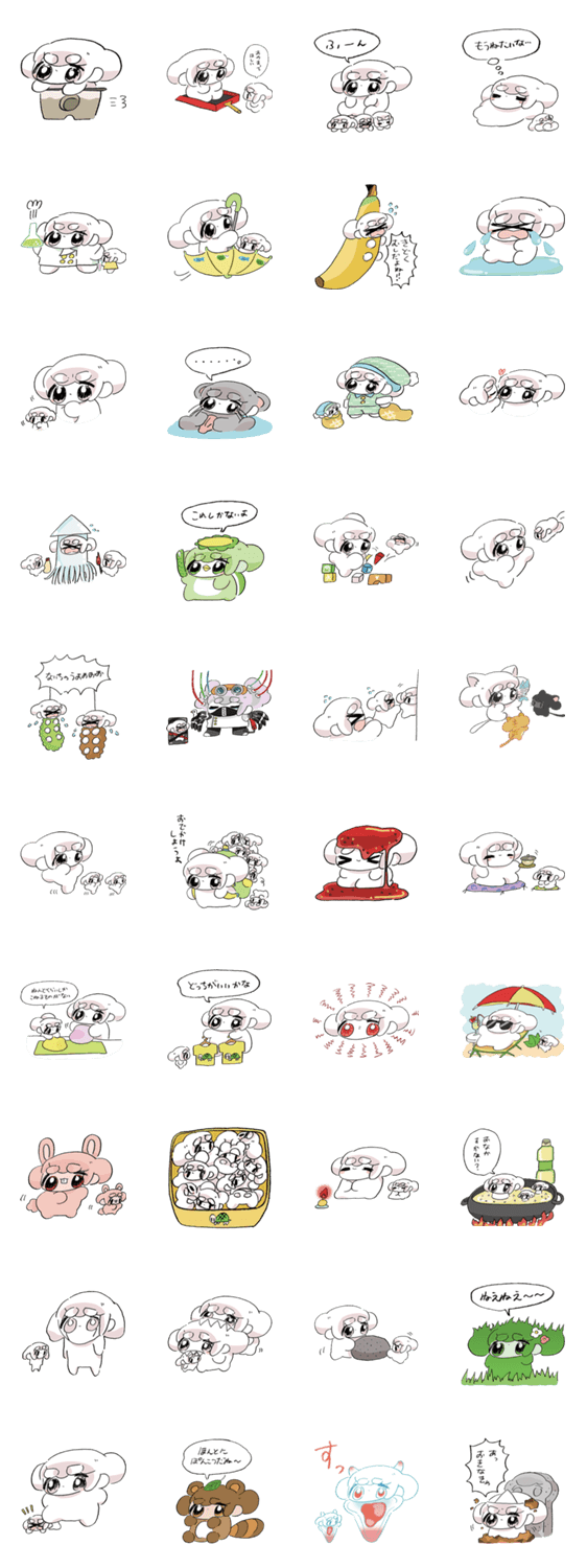 スタンプ説明 おもちのたくさんこすぷれしているすたんぷだよ