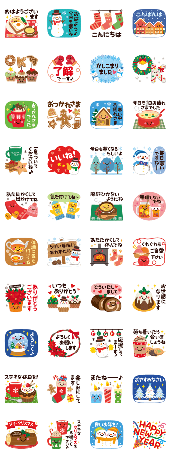 ちょっとだけ大人のほっこり冬スタンプ。クリスマスはもちろん、よく使う言葉が色々あって便利♪