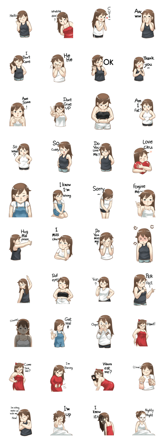 | スタンプ説明 | Big stickers for chubby, cuddly girls.You know ? you're charming and cute in your own way These stickers will show up extra large in chats. |