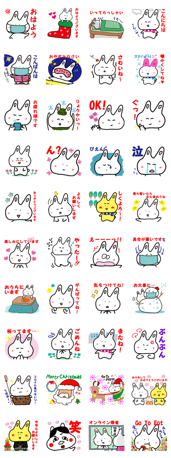 うさぽぃの冬バージョンのスタンプです。 毎日使ってね。
