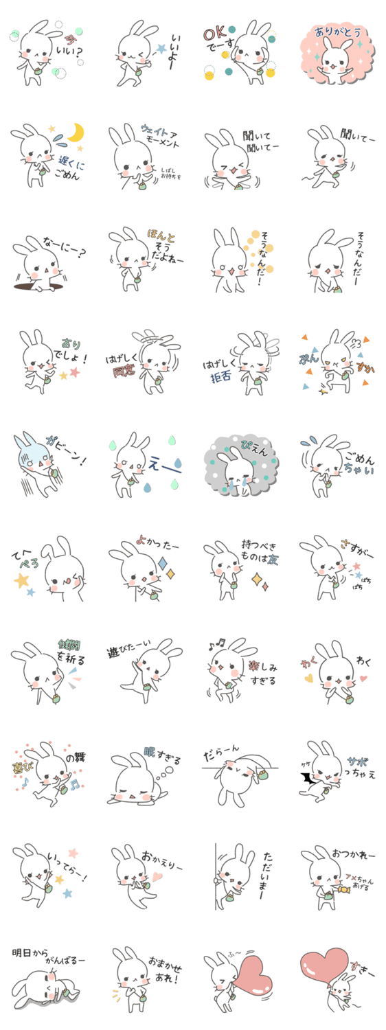 スタンプ説明 白いうさぎのシンプルで優しい色のスタンプです。