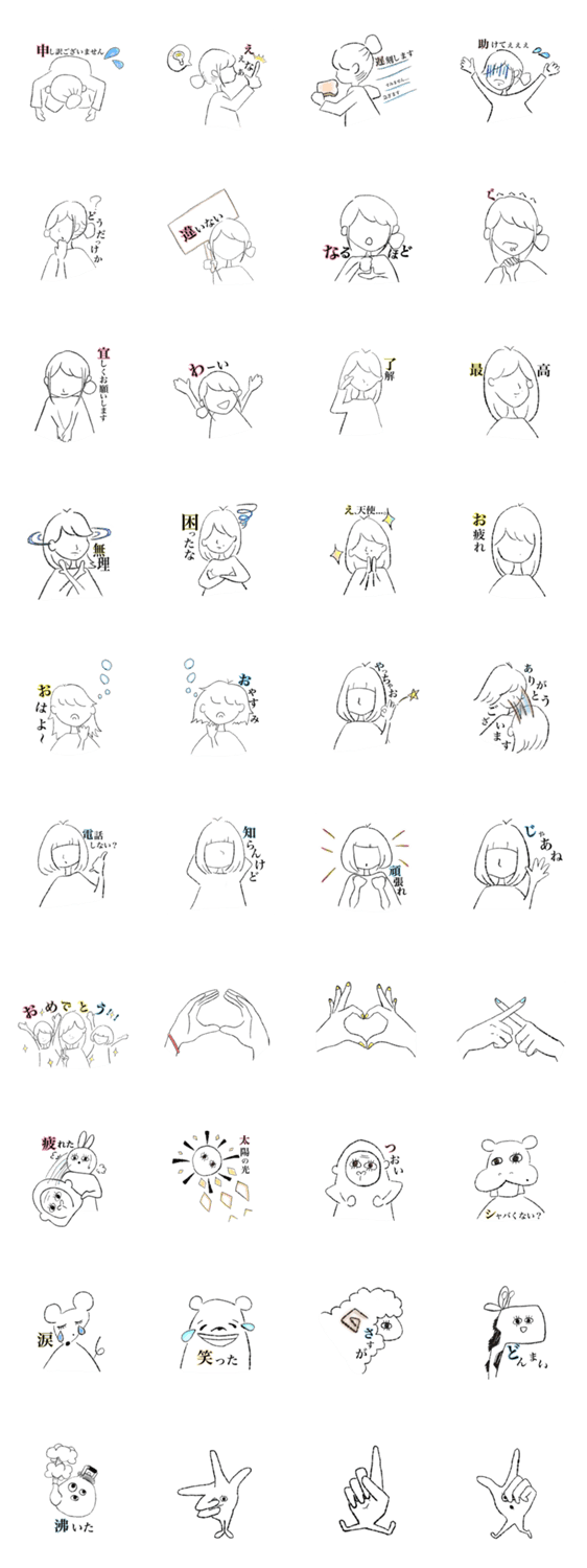 方向性がバラバラな3人と動物達の日常的に使いやすそうなスタンプです。