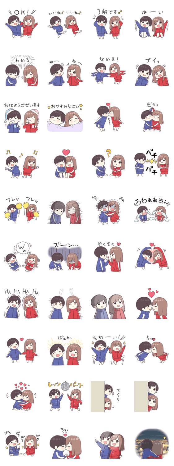 ジャージカップルから、2人一緒のスタンプが初登場!家族、友達、カップル、大切な人と楽しく送り合えるスタンプです♪