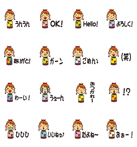 | スタンプ説明 | I love zu.のインストラクターゆみちゃんのこけしバージョンです。 色々な表情で気持ちを伝えます! |