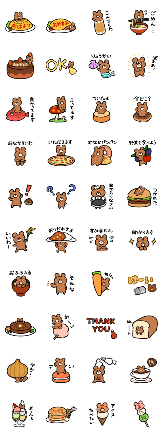 茶色いくまと食べ物のゆる〜いスタンプです。