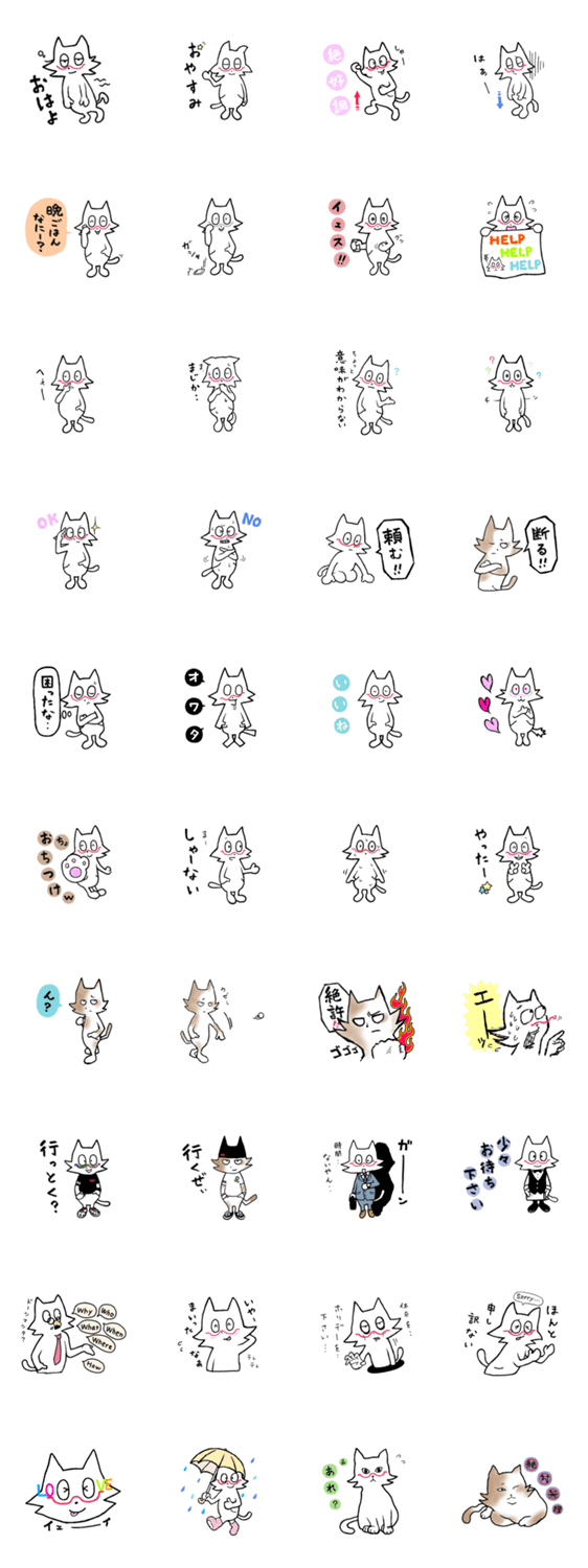 メガネをかけたネコ(?)の日常系スタンプです。猫になったり、人間っぽくなったりします。