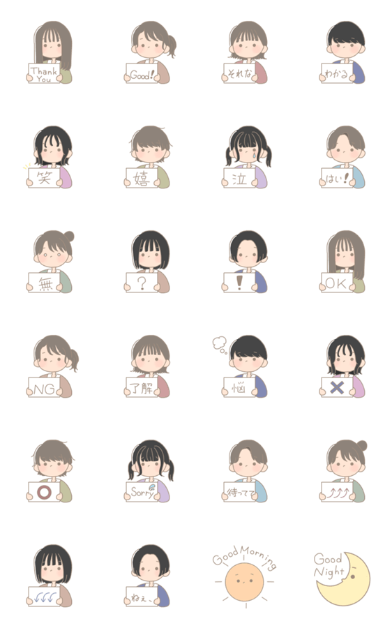 スタンプ説明 カンペを持ったかわいい子たちのスタンプです!