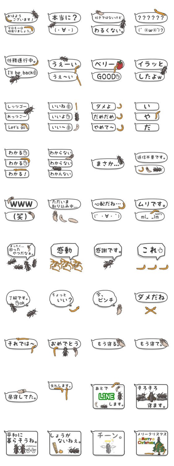 | スタンプ説明 | ゴミムシダマシ達の吹き出し風LINEスタンプが登場です♪ |