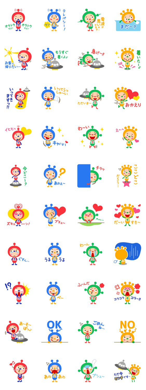 宇宙からやってきたドタバタ賑やかな4兄弟。楽しく可愛らしい表情であなたの気持ちを代弁します。日常的に使いやすいスタンプです。