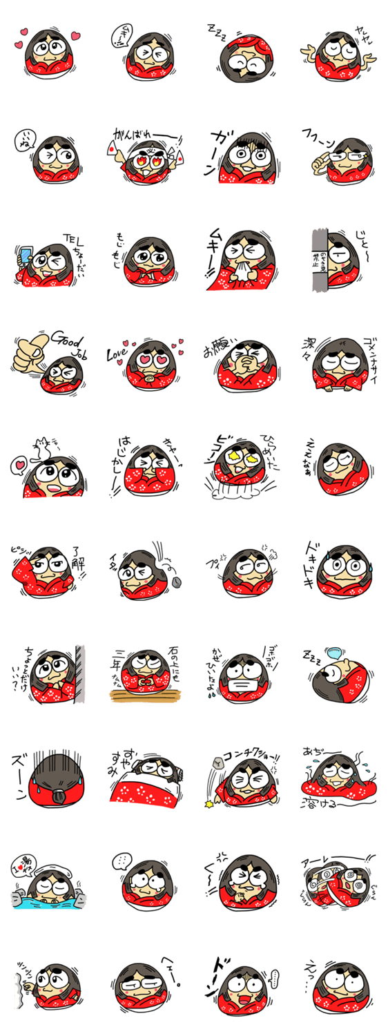 | スタンプ説明 | 起き上がり小法師のこぼしちゃんは、ときどき寝ちゃうのんき者。あなたの気持ちをゆる〜く伝えます♪ |