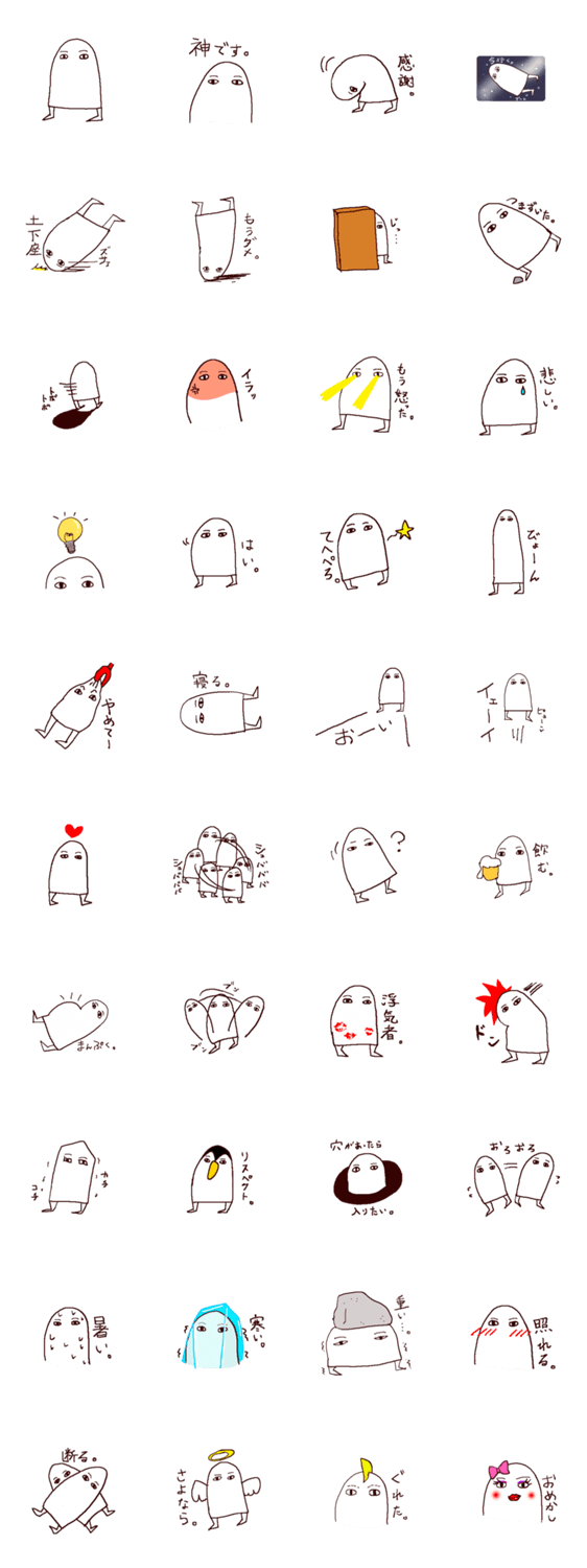 エジプトの壁画に登場するメジェド様のスタンプです。おばけじゃなくて、神様です。ゆるめな神が、無表情に、シュールに、あなたの気持ちを表現します。
