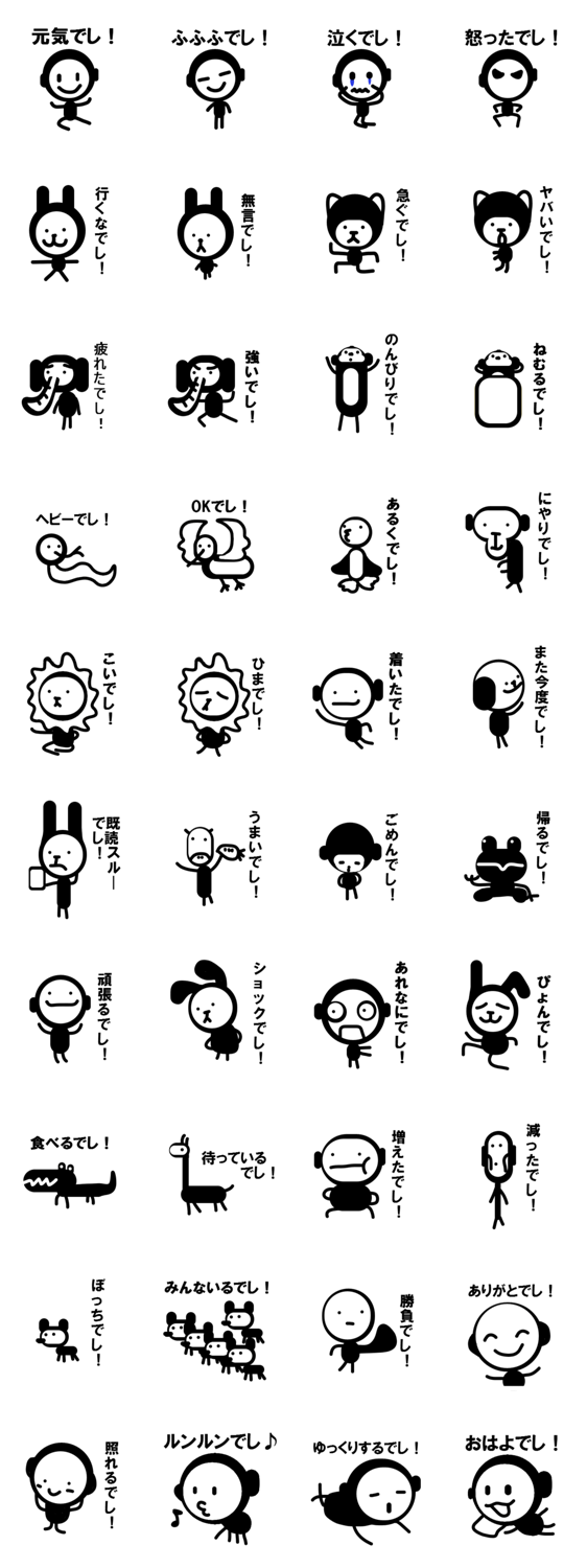 スタンプ説明 くろまめ君とそのお友達の動物たちでし!