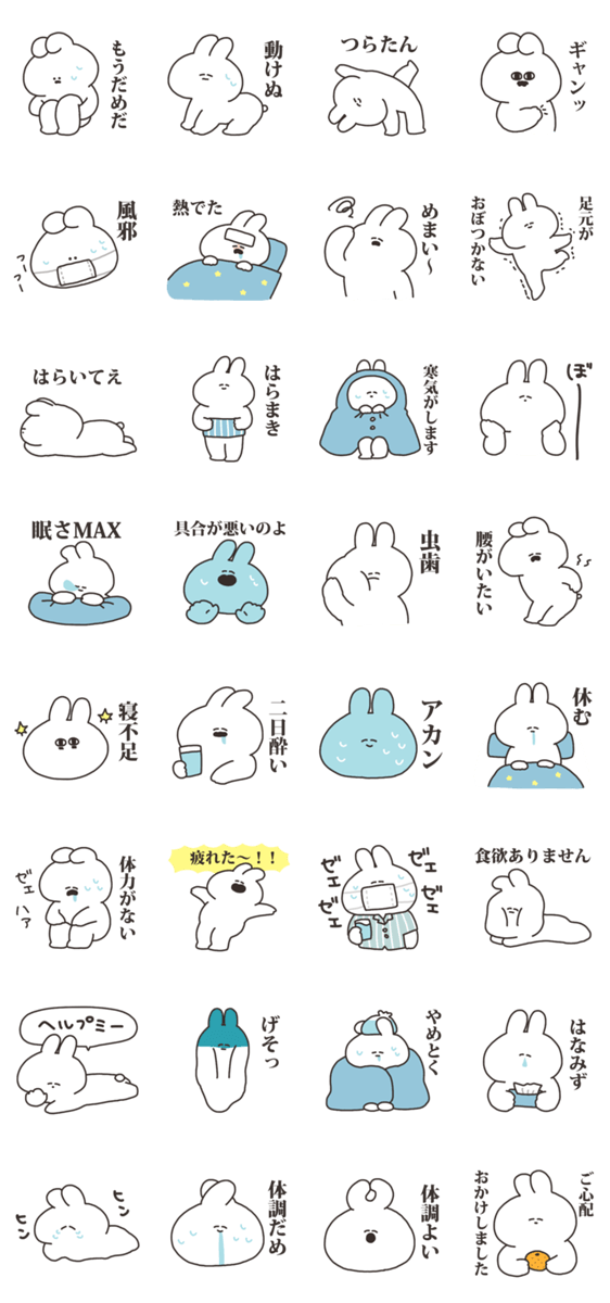 不調うさちゃん その2 -LINEスタンプマニア