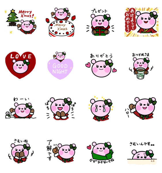 かわいいピンクのくまの冬に使えるスタンプです。 クリスマスやお正月用もあります。