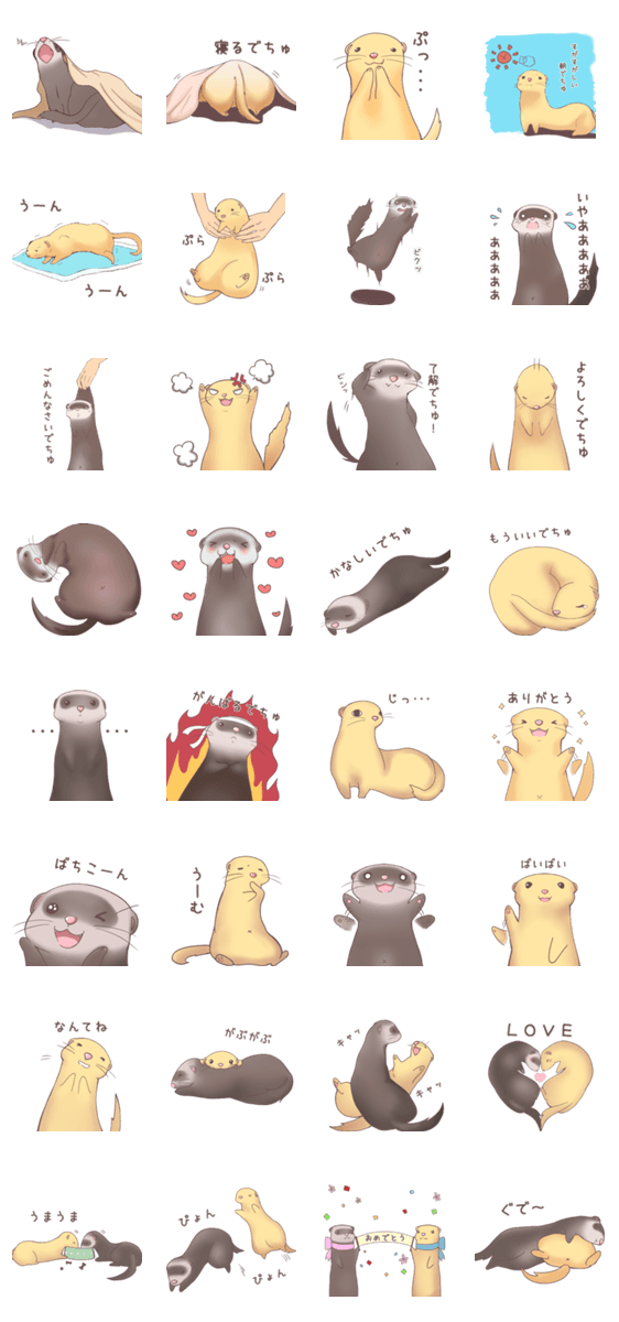 なかよしなかわいいフェレットちゃんたちのスタンプです