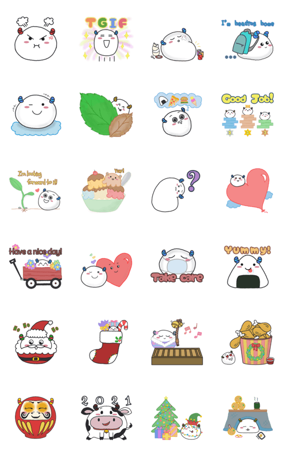 スタンプ説明 ろろと冬と一緒にお祝い!