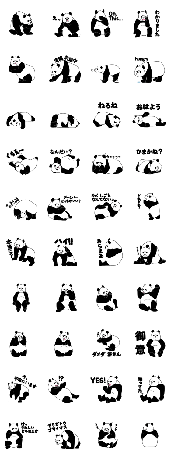 パンダのスタンプ。むっちり体型のパンダの日常系スタンプです。