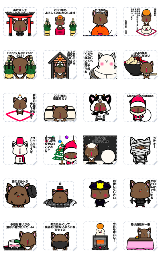 クリスマスや年末年始に使えるスタンプです。 好きなメッセージに変更して使ってください。 現在この商品は一部のスマートフォン版LINE 10.3.0以上のトークルームでのみ使用できます。動作環境の最新情報はヘルプをご確認ください。