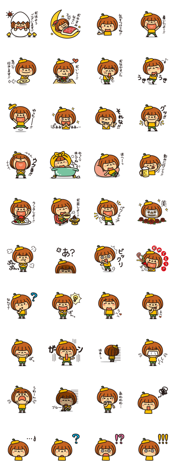 ミカン大好き!元気なおかっぱ女子が日常でよく使う言葉のスタンプです。