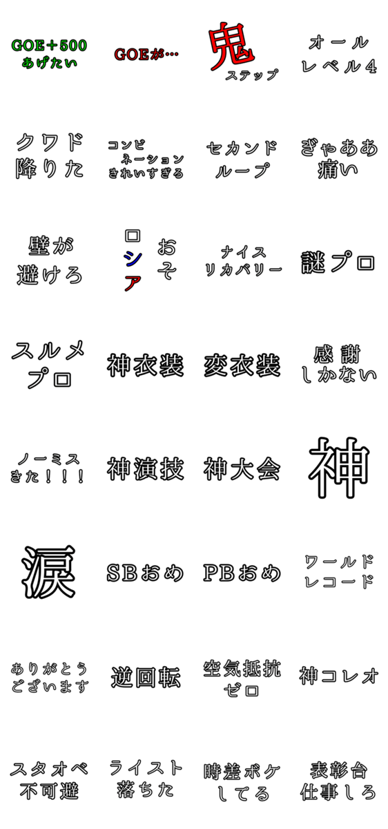 フィギュアスケートを見る人の文字スタンプ -LINEスタンプマニア