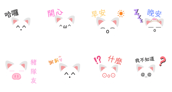 白ネコのあいうえお・・・ってるスタンプ