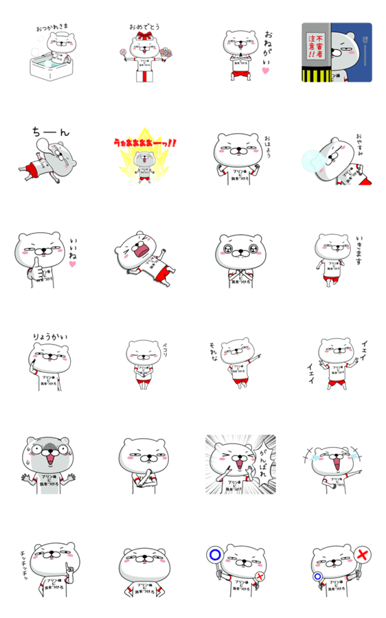 | スタンプ説明 | 痛風に苦しむ大事な人がいる方におすすめ!プリン体を摂り過ぎないように注意喚起するTシャツを着たクマのスタンプです。動くんです❤ |