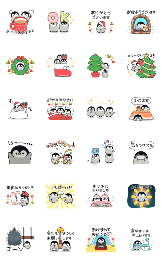 クリスマスやお正月に使える挨拶が沢山♪日常使いにも便利な、ペンギンの赤ちゃんの飛び出すポップアップスタンプです