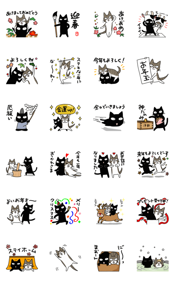 年末年始に使おう。黒猫ナノとキジシロ猫きなこが動きます。