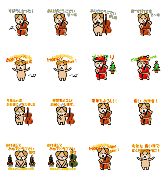 既に「いぬぽん と チェロ」を購入した人のために、よく使うあいさつを追加しました。バイオリンねこたんもヨロシク。