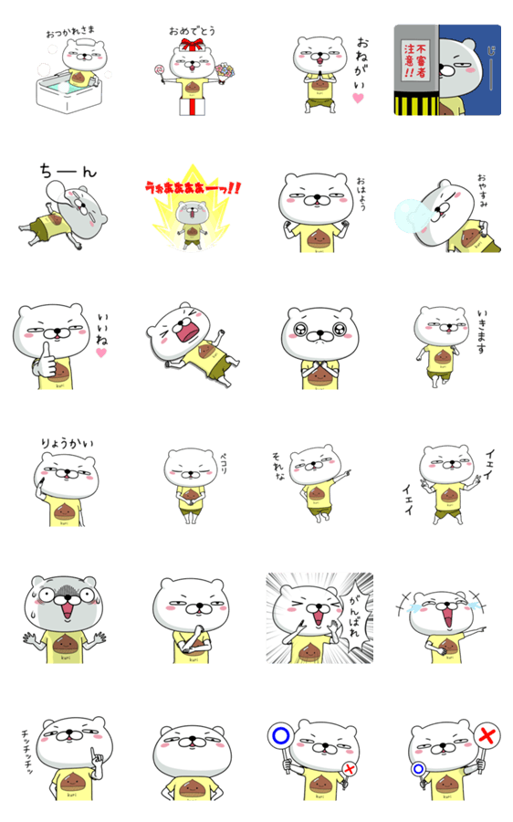 | スタンプ説明 | 秋の味覚「栗」を大胆にプリントしたおしゃれなTシャツを着たクマの動くスタンプです。 |
