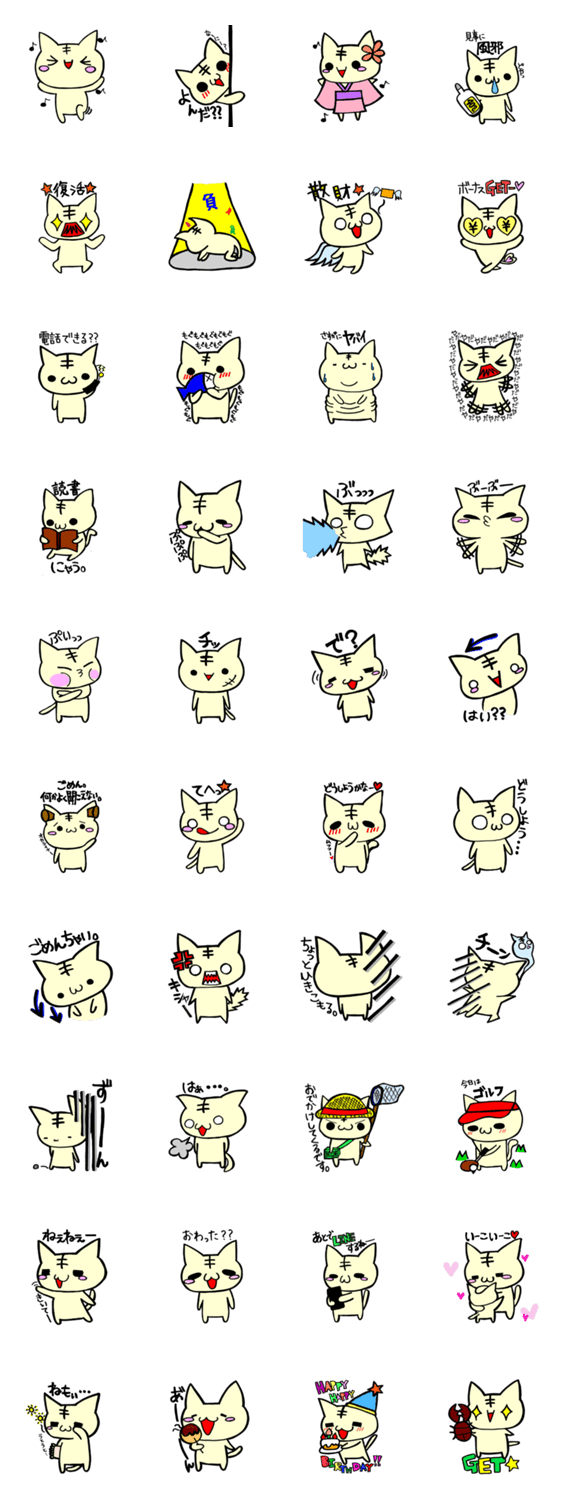 白ネコのあいうえお・・・ってるスタンプ