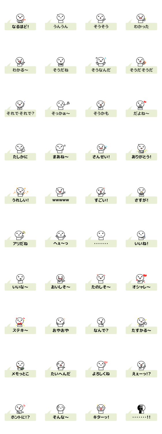 | スタンプ説明 | シンプルな吹き出し形式のスタンプです。あいづちやテキトーな返信に最適です。 |