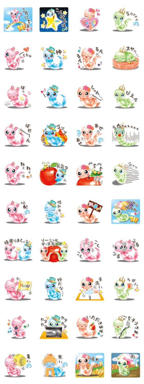 毎日使える、日常でよく使われる表現の可愛いみみずのスタンプ第三弾です。