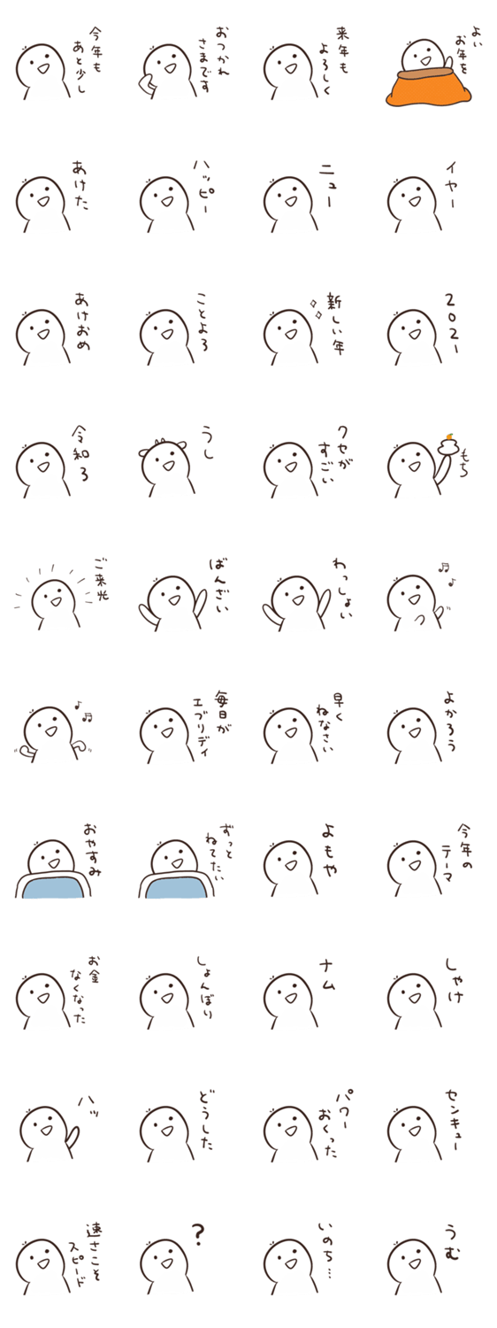 令和3年のてきとうな人のあけおめスタンプ。ゆるいけど使いやすい。毎日使えるものも入ってます。