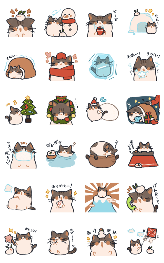 ねこのてんさんスタンプです。 お正月やクリスマスなど冬のイベントにピッタリなスタンプです。
