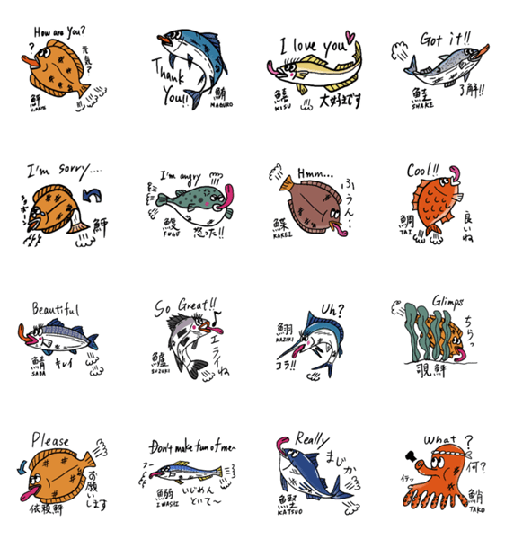ひらめと海の仲間たち ver.2 with English -LINEスタンプマニア