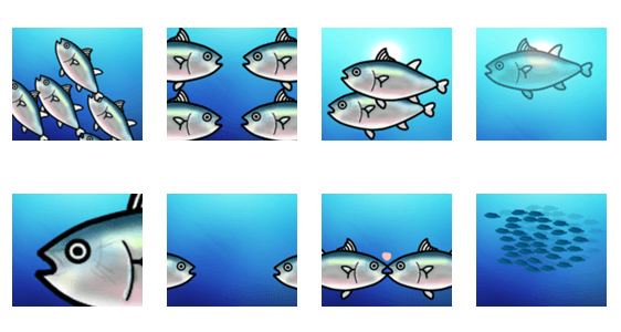 マグロ好きにはたまらない鮪のエフェクトスタンプ。カップル・恋人同士が使えるラブラブまぐろもあるよ。海とマグロと魚群で心が癒されます。