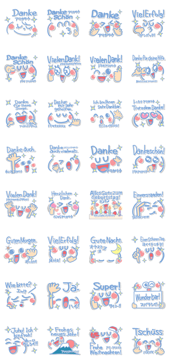 スタンプ説明 可愛いリアクション。(ドイツ語。日本語。)
